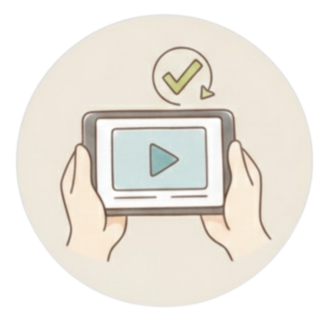 動画チェック: 。手元が分かる角度で施術動画を送っていただければ、フィードバックいたします。