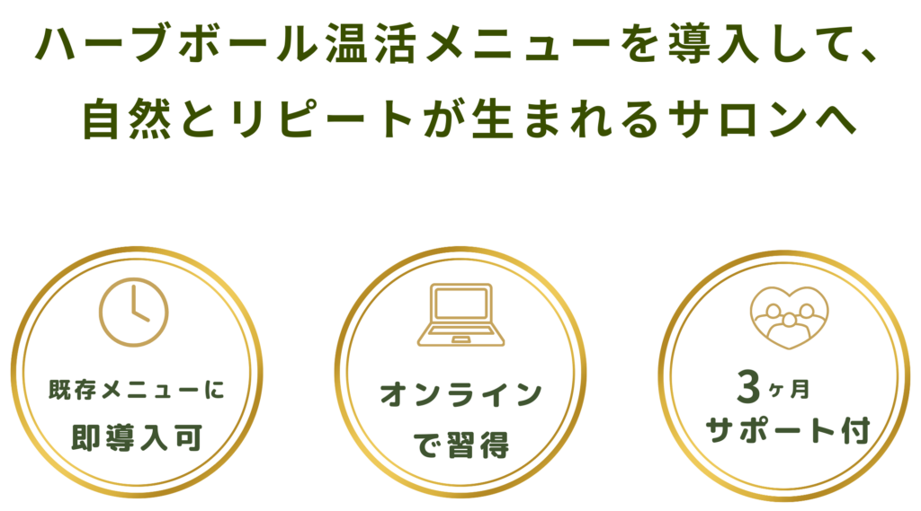 また、ハーブボールを物販としてご案内する場合も、施術とあわせて提案しやすく、お客様のホームケアの選択肢としても展開できます。